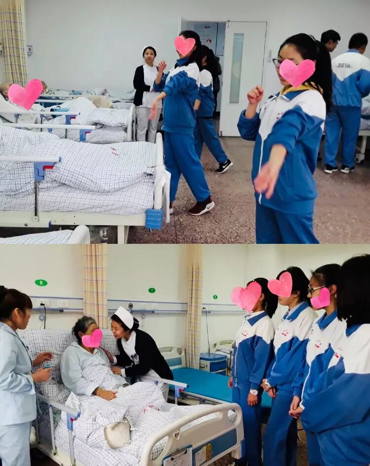 中学生志愿者来天津华北医院为老人们表演才艺,陪老人聊天。